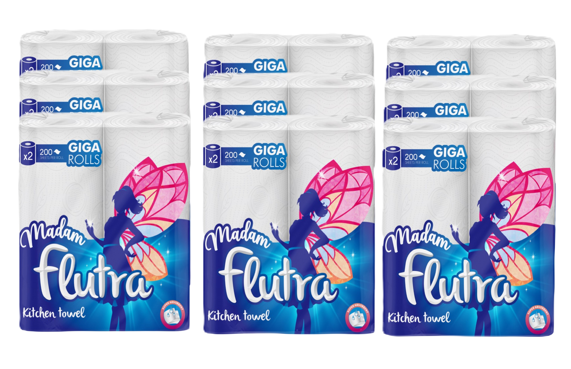 Sorgen Sie für einen stets guten Küchenvorrat und hohe Ansprüche mit der Madam Flutra 3-lagigen Giga-Rolle 1/2 – einer Premium-Papierhandtuchlösung für höchste Weichheit, Festigkeit und Effizienz. Jede Rolle enthält 200 Blatt ultrastarkes, ultraweiches 3-lagiges Komfortpapier und ist somit ideal für den täglichen Gebrauch und stark frequentierte Umgebungen. Mit insgesamt 18 Rollen in 9 Doppelrollenpackungen bietet diese Großpackung langanhaltenden Komfort für den privaten und beruflichen Gebrauch.