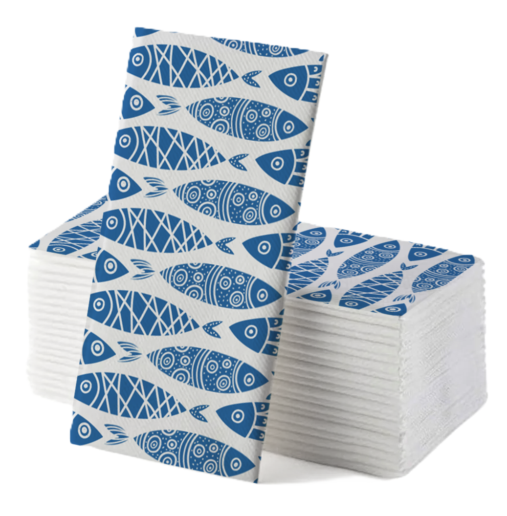 Flutra Airlaid Napkins – 1/8 Fold, Fish/Sea Motif (600 pcs, 40x40 cm)